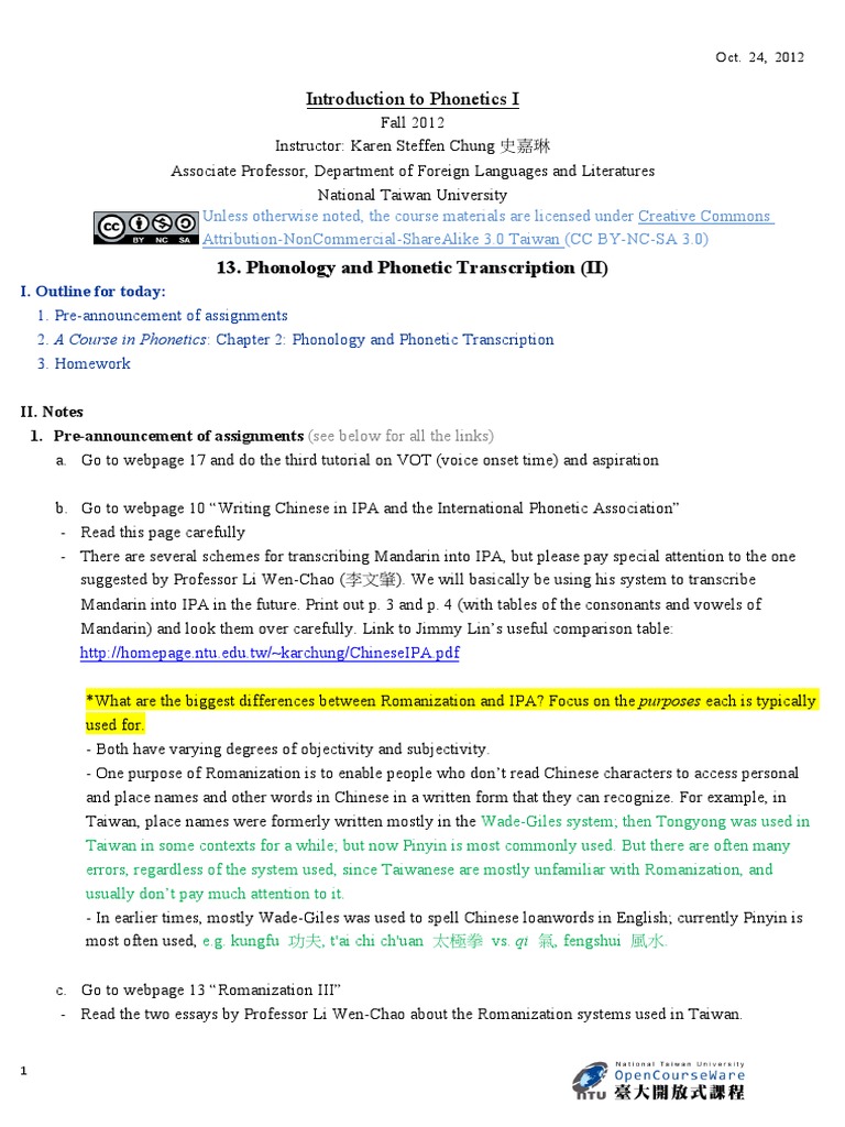 b. Read about writing Chinese in IPA on webpage 10 (Writing Chinese in IPA and the International