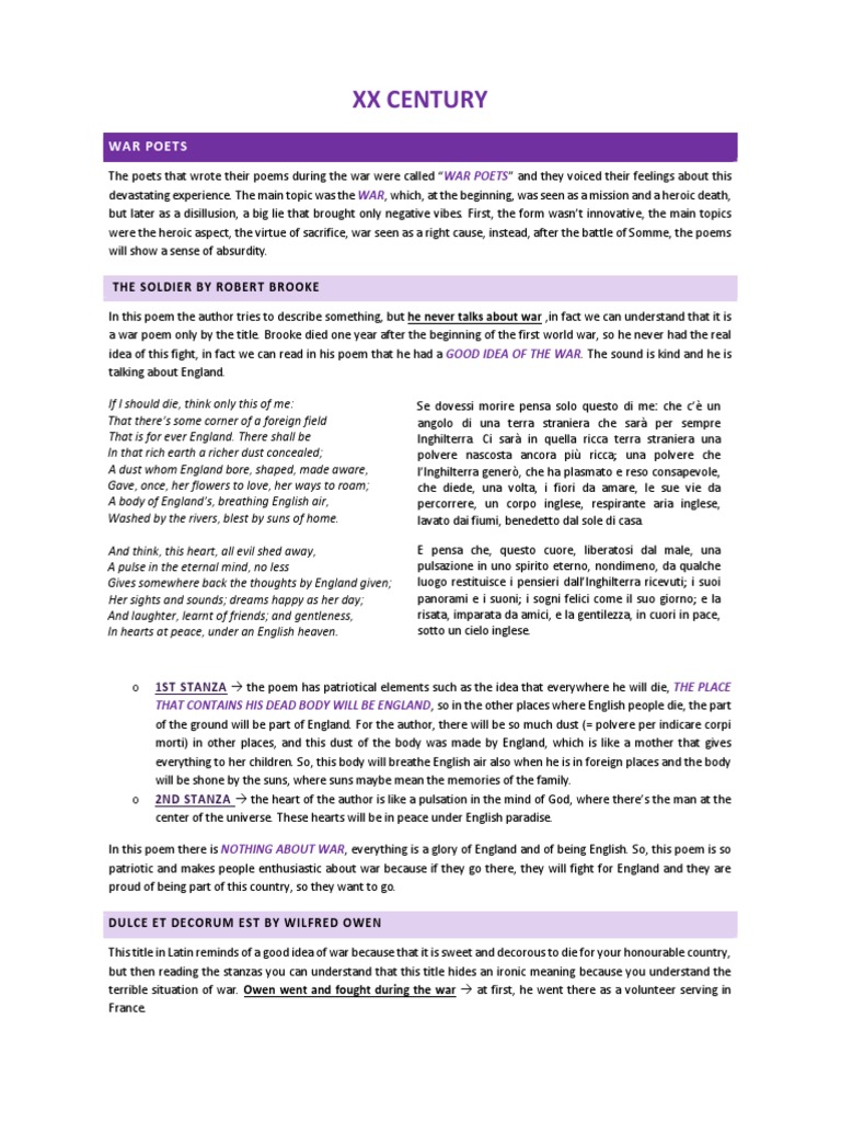 a war poem only by the title. Brooke died one year after the beginning of the first world war, so he never had the real