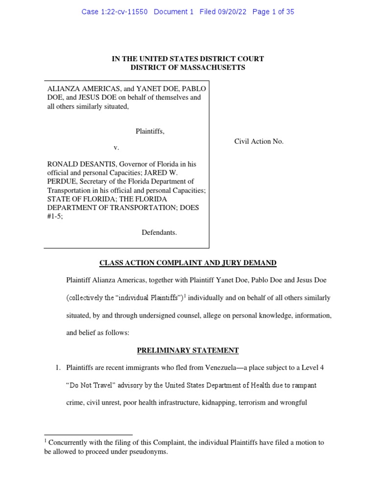 Class Action Against Florida Officials for Migrant Deception