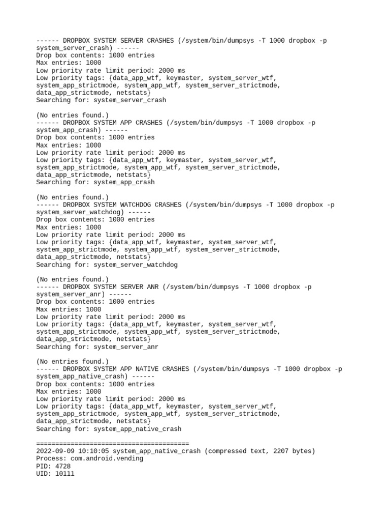 ------ DROPBOX SYSTEM APP CRASHES (/system/bin/dumpsys -T 1000 dropbox -p
