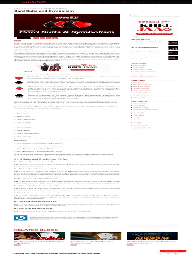 Adda52 > Blog > Games > Card Suits and Symbolism