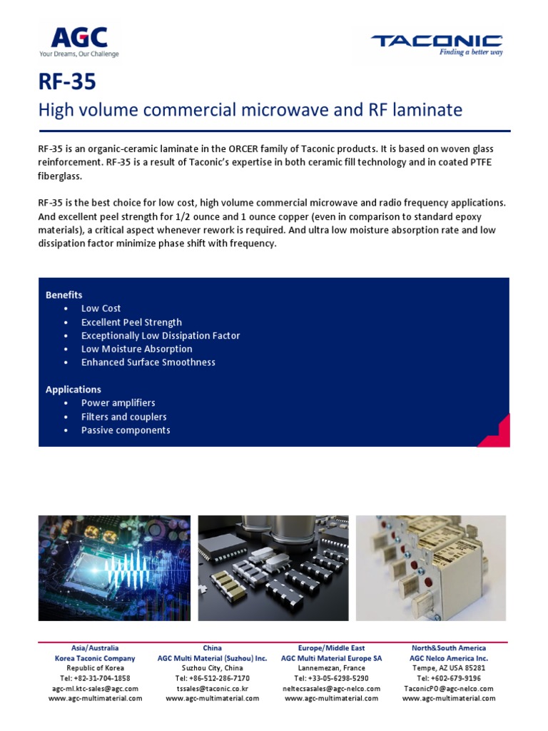 reinforcement. RF-35 is a result of Taconic’s expertise in both ceramic fill technology and in coated PTFE