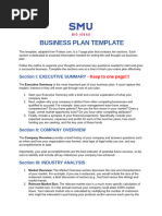 The business plan template below is divided into sections as described in the table