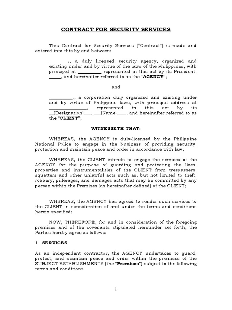 1.2. The security guard/s assigned by the AGENCY shall be
