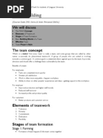 A mission is your teams ultimate purpose. o Why do we exist? o Who do we serve? Communicating the Vision and Formulating Overarching Goals. o A vision is something to aspire to. It is not a mystical thing, but a practical thing. The vision is, a way of communicating the organizations strategy and objectives so that they excite people, challenge people and attract them. Developing a Code of Ethics. o How are we going to behave toward one another? o Which are the teams Values? Establishing Roles. o Functions o Authority o Accountability o Priorities Blending Individual Styles. o Utilizing strengths, minimizing weaknesses o Motivating various styles o Managing conflict successfully Managing team performance conflict successfully. o Determining success criteria o Formulating a Consensus and By-In o Performing a Resource Audit Evaluating the success criteria Marketing the team Celebrating success-recognition. Action-Planning