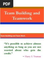 Do you immediately picture your group off at a resort playing games or hanging from ropes when you think of team building? Traditionally, many organizations approached team building this way. Then, they wondered why that wonderful sense of teamwork, experienced at the retreat or seminar, failed to impact long term beliefs and actions back at work. Im not averse to retreats, planning sessions, seminars and team building activities in fact I lead them - but they have to be part of a larger teamwork effort You will not build teamwork by retreating as a group for a couple of days each year. Think of team building as something you do every single day.