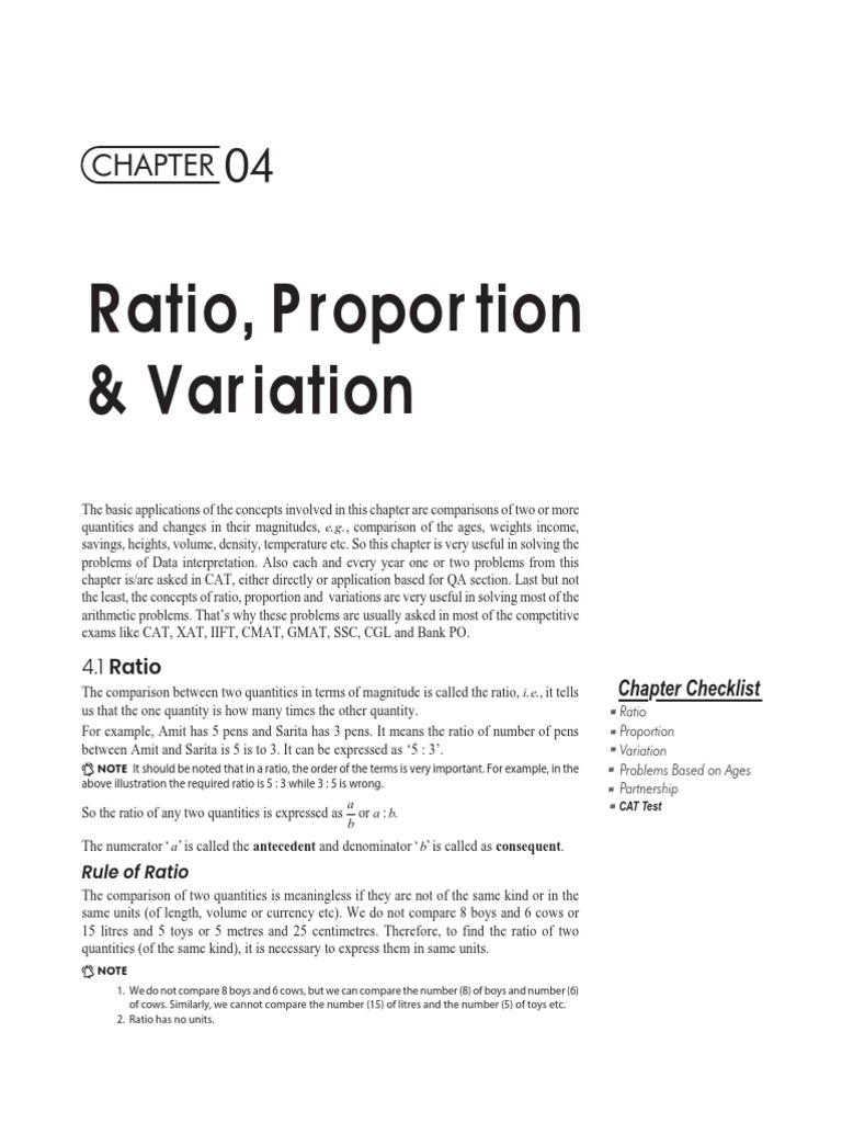 The comparison between two quantities in terms of magnitude is called the ratio, i. e., it tells Chapter Checklist