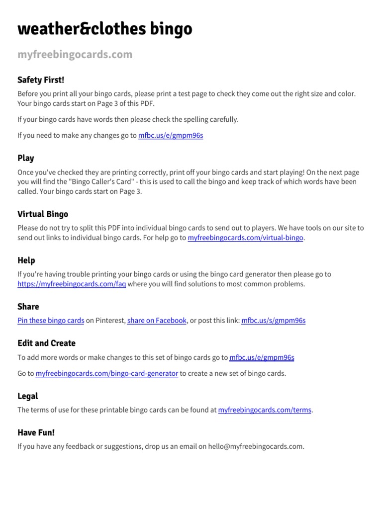 Once you've checked they are printing correctly, print off your bingo cards and start playing! On the next page