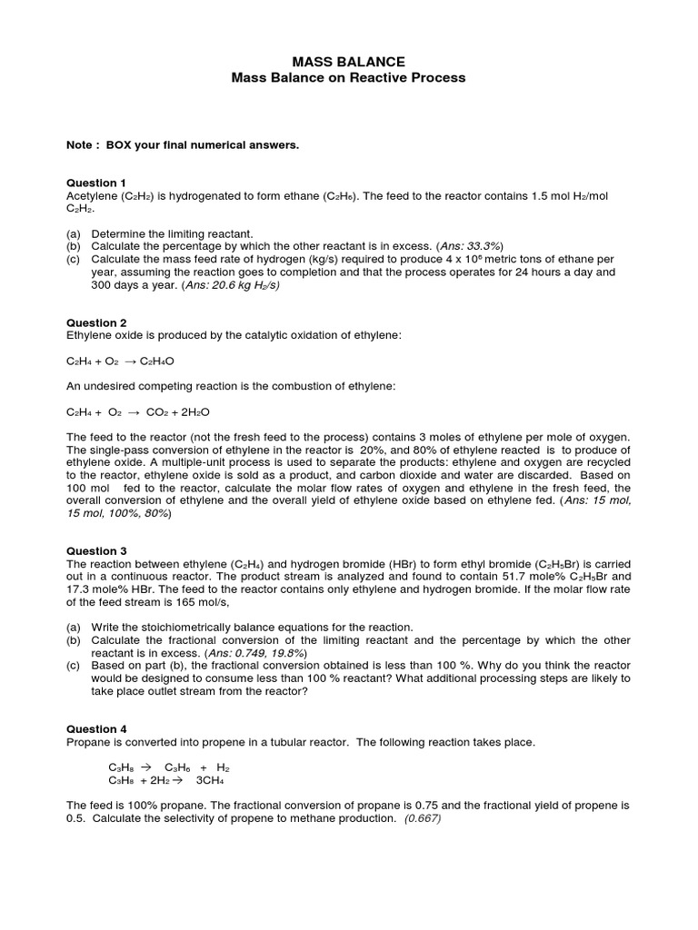 would be designed to consume less than 100 % reactant? What additional processing steps are likely to