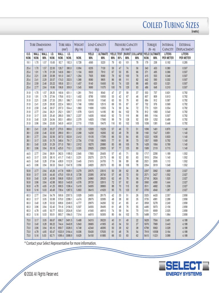 Coiled Tubing Sizes