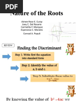 1. describe the nature of the roots of the quadratic equations using its discriminant;
