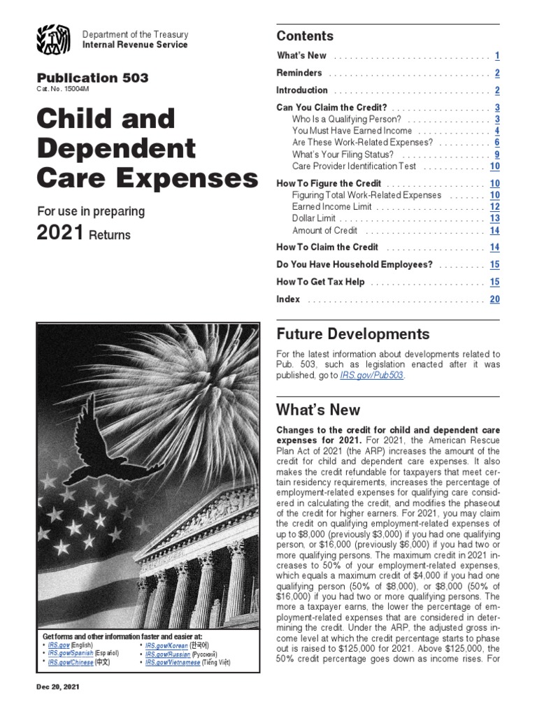 2021, the credit figured on Form 2441, Child and Depend- You may have to pay employment taxes. If you pay