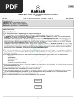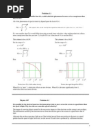 The following four questions which appeared in the All India Engineering/Architecture Entrance Examination 2009 (AIEEE 2009) will be beneficial to most of the entrance test takers. Those who prepare for AP Physics C exam and physics GRE may take special note of question no.2. Here are the questions with solution: (1) A charge Q is placed at each of the opposite corners of a square. A charge q is placed at each of the other two corners. If the net electric force on Q is zero, then Q/q equals (1) 1/2 (2) 22 (3) 1 (4) 1 The electric force FQQ (Fig.) on Q because of the charge Q at the opposite corner is repulsive and is given by F1 = (1/40)(Q2 /2a2) since the distance between the charges Q and Q is 2a/2 = a2 The electric forces FQq and FQq (Fig.) on Q because of the charges q and q at the adjacent corners are perpendicular to each other. Each force has magnitude given by FQq = (1/40)(Qq/a2). Their resultant F2 has magnitude 2 times the above value: F2 = (1/40)(2 Qq/a2). Since the net force on Q is zero, we have F1 + F2 = 0 Therefore, (1/40)(Q2 /2a2) + (1/40)(2 Qq/a2) = 0 This gives Q/q = 22 [The charges Q and q must be of opposite sign so that the force between Q and q is attractive to ensure that F1 and F2 are opposite in directions and the net force on Q is zero as given in the question]. (2) Let P(r) = Qr/R4 be the charge density distribution for a solid sphere of radius R and total charge Q. For a point p inside the sphere at distance r1 from the centre of the sphere, the magnitude of electric field is (1) Qr12 /30 R4 (2) 0 (3) Q/40 r12 (4) Qr12 /40 R4 Charge dQ contained in the spherical shell of radius r and thickness dr is (Qr/R4)(4r2dr) = (4Q/R4) r3dr Charge Q1 contained in the spherical volume of radius r1 is therefore given by Q1 = 0 r1 (4Q/R4) r3dr = (4Q/R4)(r14/4) = Qr14 /R4 If E is the electric field at distance r1 from the centre of the sphere, we have from Gauss theorem, 4r12E = Qr14 /R40 from which E = Qr12 /40 R4 [Remember that the charges distributed with spherical symmetry outside the point p will produce zero field at p and the field at p is