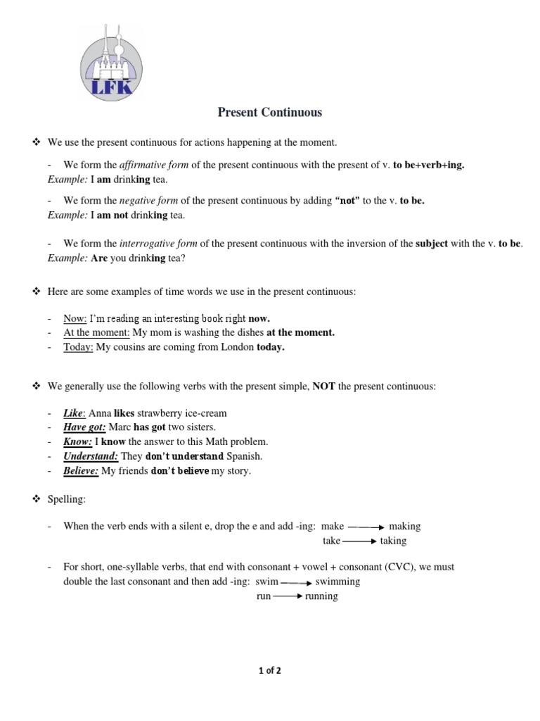 - We form the affirmative form of the present continuous with the present of v. to be+verb+ing.
