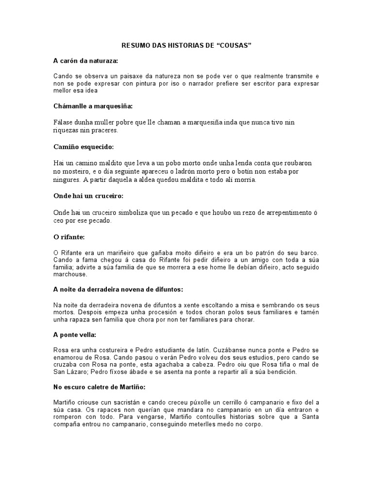 RESUMO DAS HISTORIAS DE “COUSAS”
