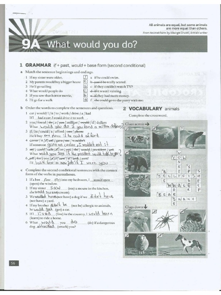 'b Order the words to complete the sentences and questions. 2 VOCABULARY animals