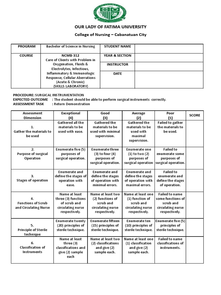 EXPECTED OUTCOME : The student should be able to perform surgical instruments correctly.