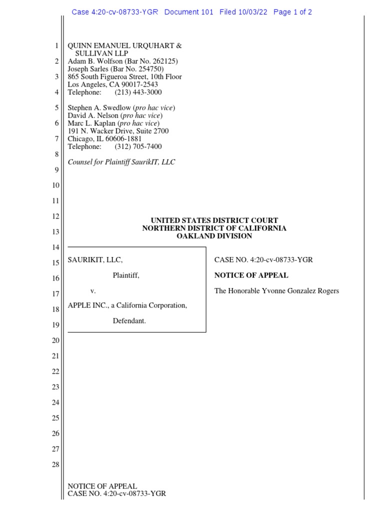 2 NOTICE IS HEREBY GIVEN that Plaintiff SaurikIT, LLC appeals to the United States
