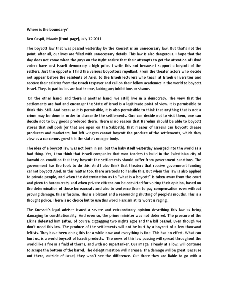 Maariv July12-11 (Ben Caspit - Where Is The Boundary)