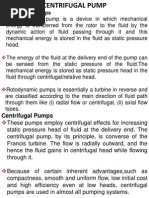 (1) Rotodynamic pumps which move the fluid by dynamic action of imparting momentum to the