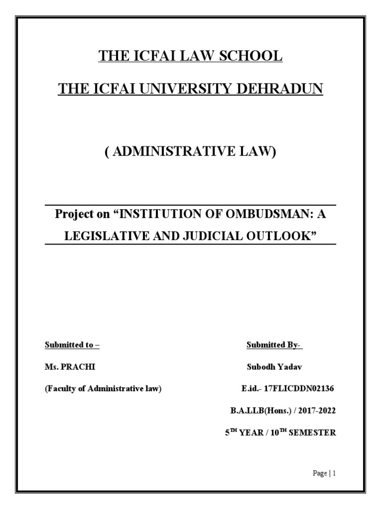 Project on “INSTITUTION OF OMBUDSMAN: A