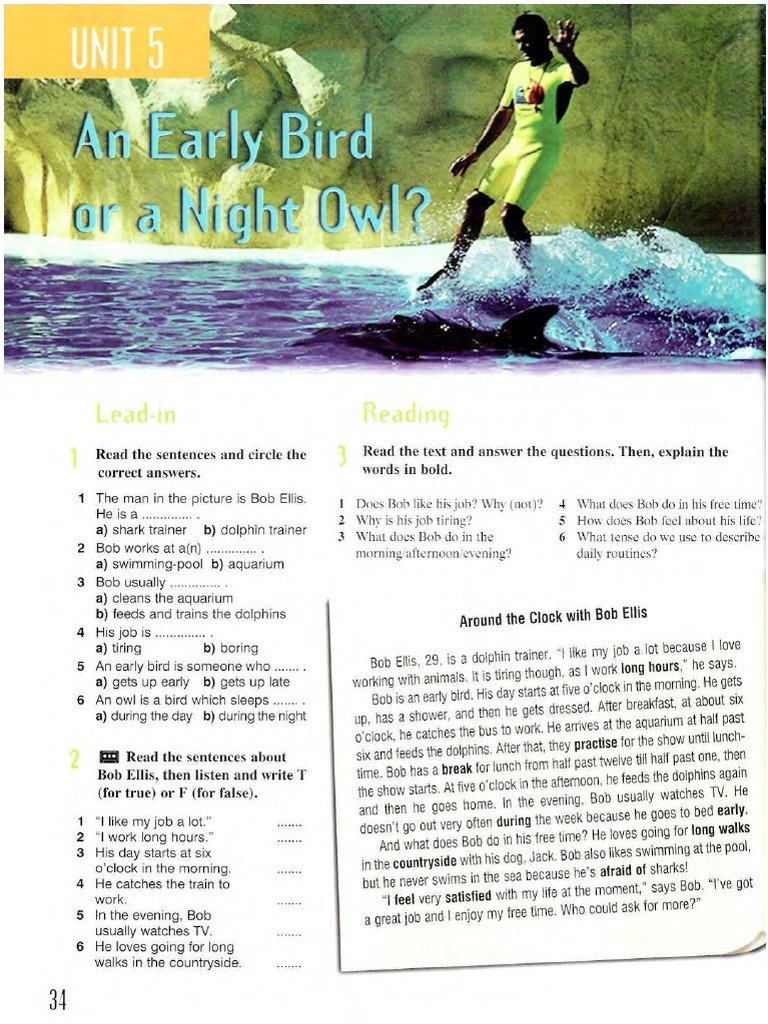 Bob isan early bid His day starts atfve o'clockin he morning He gets
