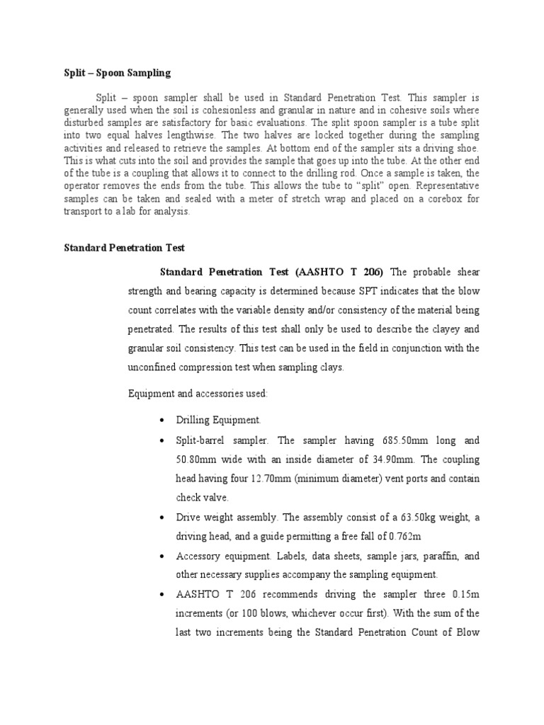 Split – spoon sampler shall be used in Standard Penetration Test. This sampler is