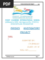 This is a cover page for a physics project from the year 2025. It includes the student's name, roll number, class, and section but no other details about the project.