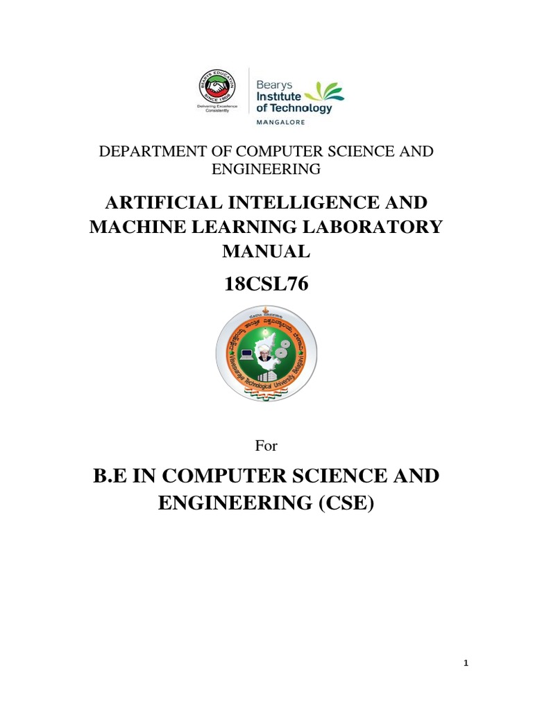 Artificial Intelligence and Machine Learning Laboratory Manual