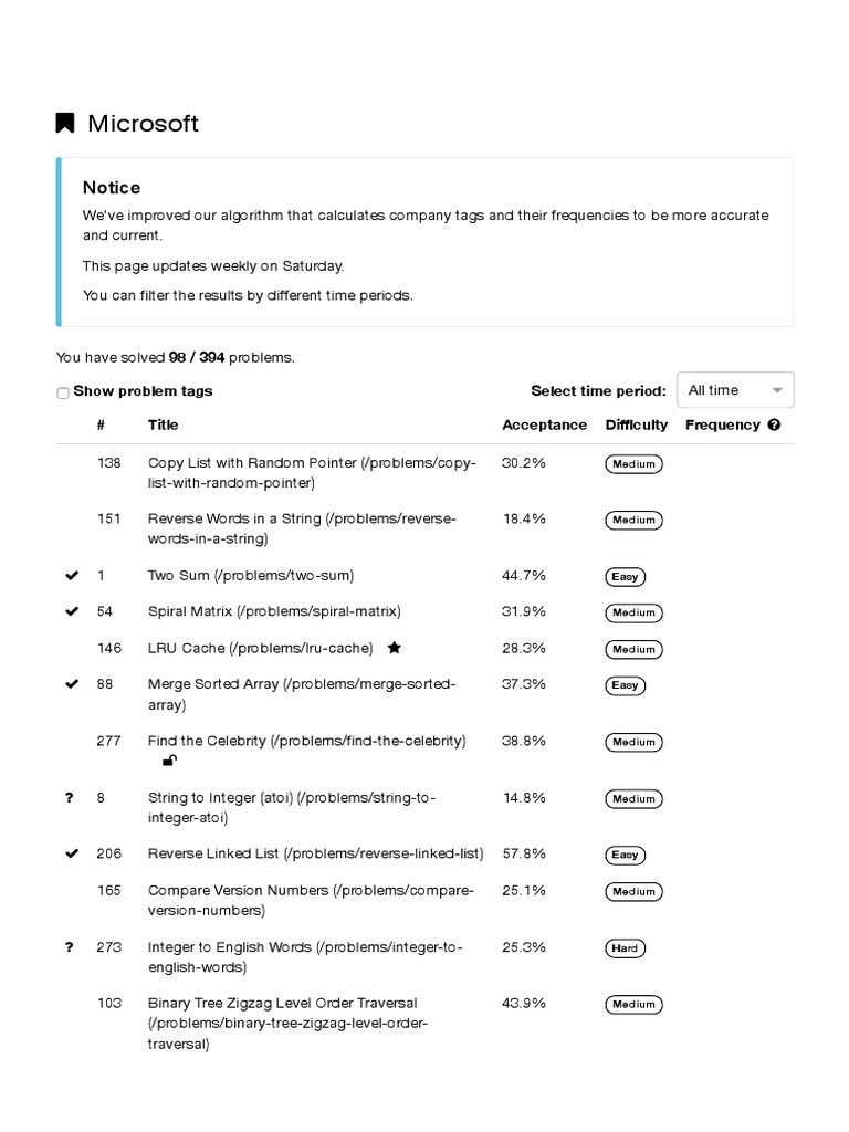 165 Compare Version Numbers (/problems/compare- 25.1% Medium