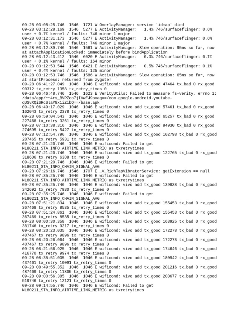 09-28 06:59:04.543 1046 1046 E wificond: vivo add tx_good 65257 tx_bad 0 rx_good