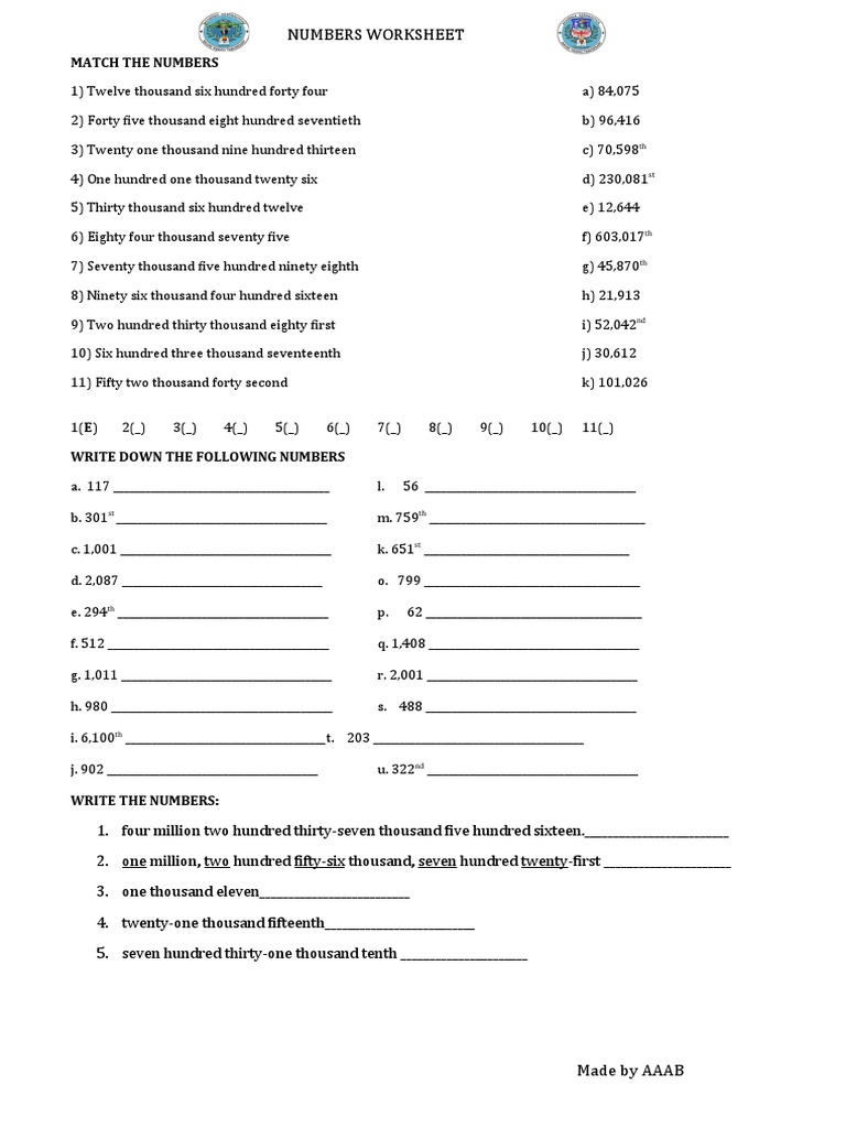 9) Two hundred thirty thousand eighty first i) 52,042nd