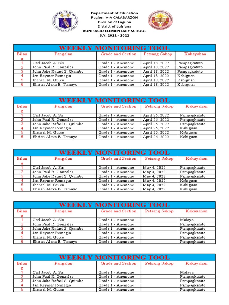 WEEKLY MONITORING TOOL