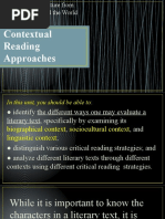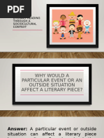 ● Reading using the sociocultural context helps you understand the social, economic, political, and cultural forces
