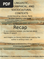 In reading using the sociocultural context, you will examine the factors that affect the writing of the literary text and