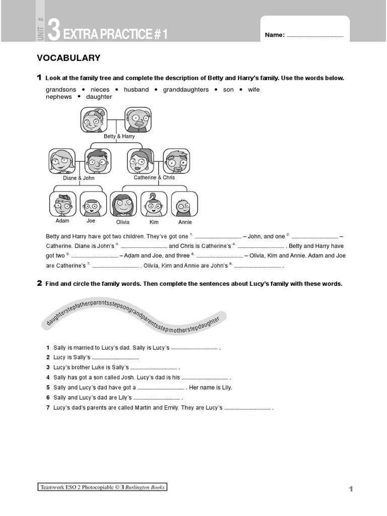 2 Find and circle the family words. Then complete the sentences about Lucy’s family with these words.