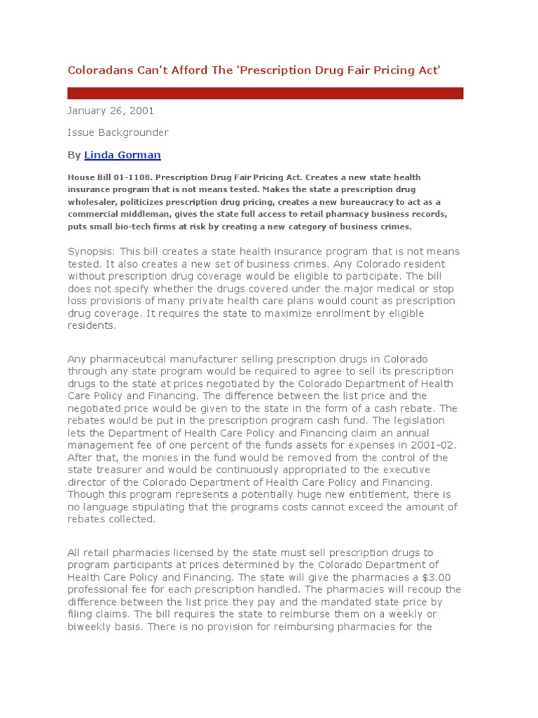 Coloradans Can't Afford The 'Prescription Drug Fair Pricing Act'