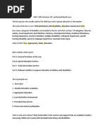 requirements. It identifies the characteristics of a disability the qualify for special education