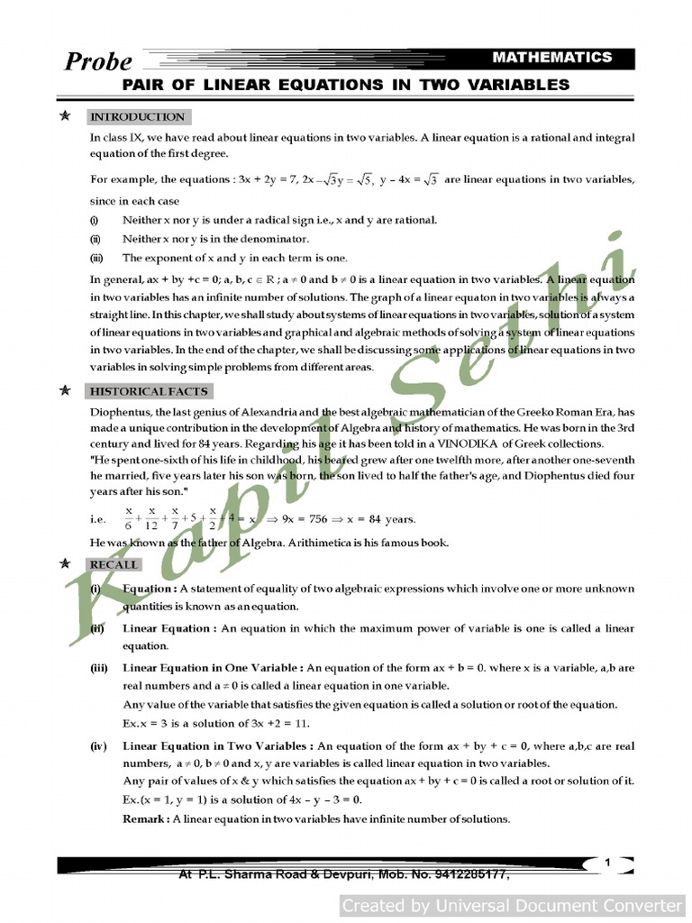 in two variables. In the end of the chapter, we shall be discussing sone applifafions ofiihear equations in two