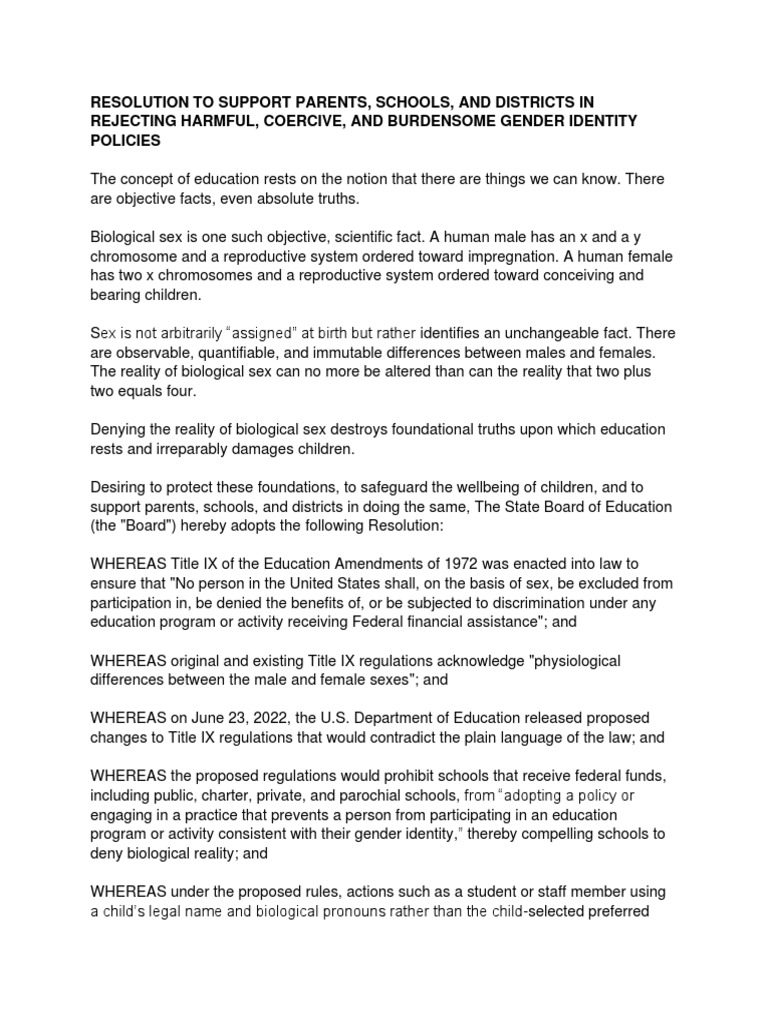 RESOLVED, that the State Board of Education declares its unequivocal opposition to