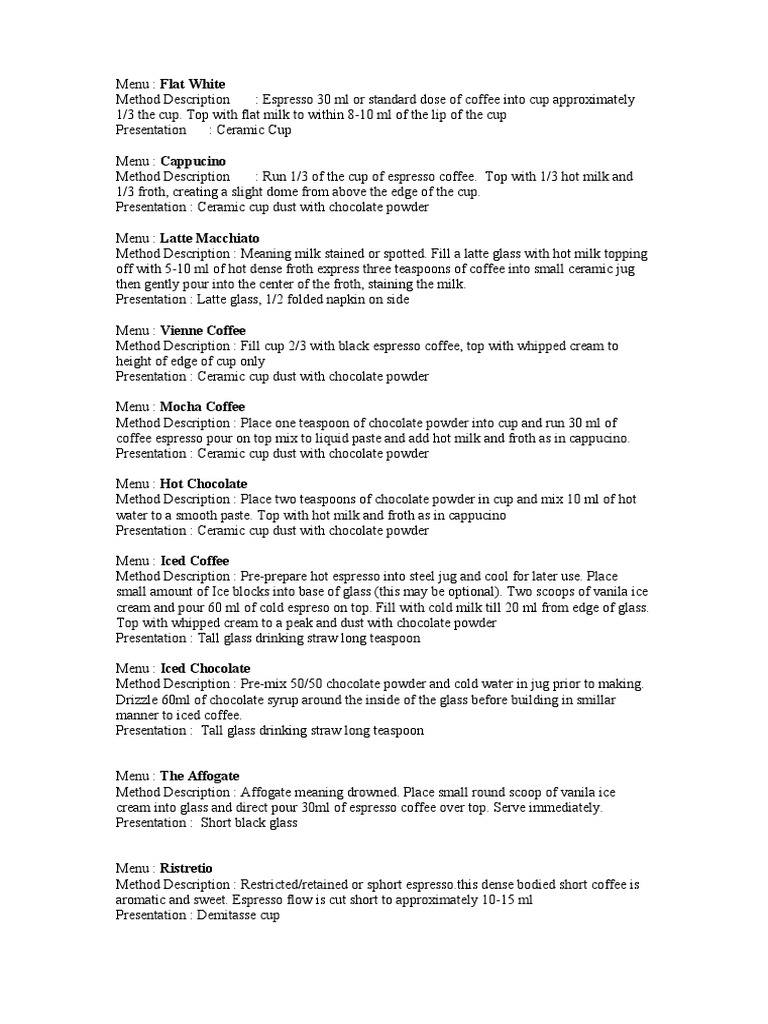 Method Description : A 30 ml serv ing of espresso coffee with a twist of lemon peel or half