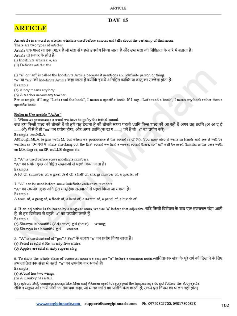 Article एक श या एक अ र है जो सं ा से पहले उपयोग िकया जाता है और उस सं ा की िनि तता के बारे म बताता है ।