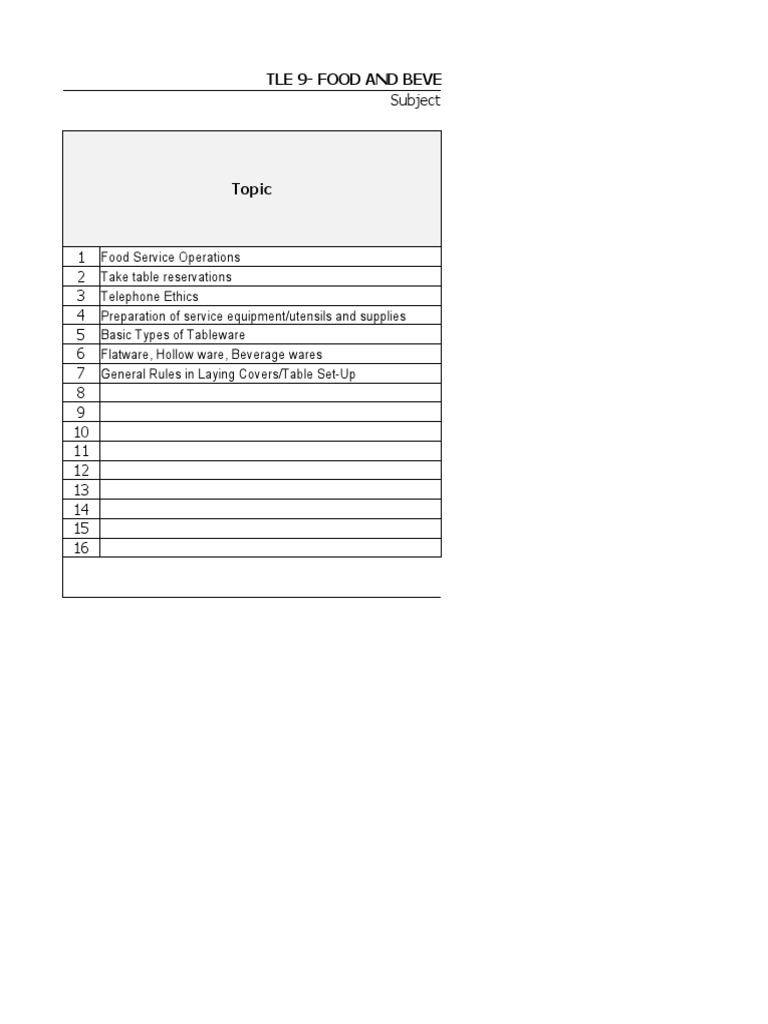 TLE 9- FOOD AND BEVERAGE SERVICES