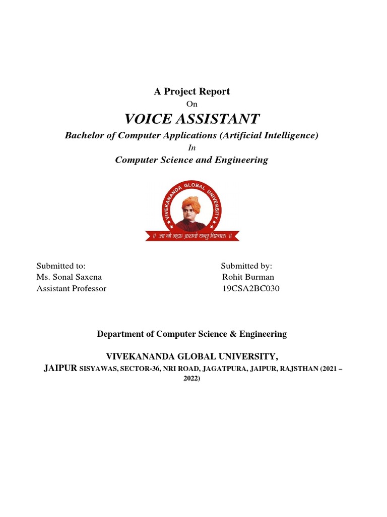 “VOICE ASSISTANT” in partial fulfillment of the award of Bachelor of Computer