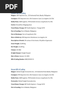 Container Seal Number Description of Goods No of Packages Net Weight Gross Weight Measurements