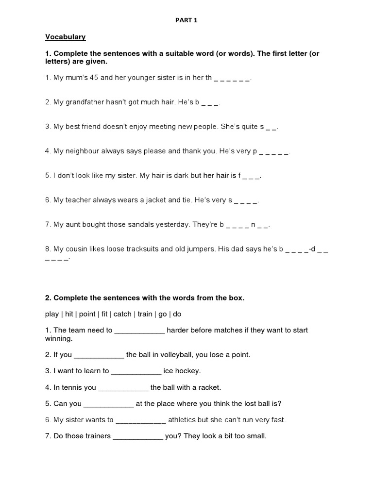 1. Complete the sentences with a suitable word (or words). The first letter (or