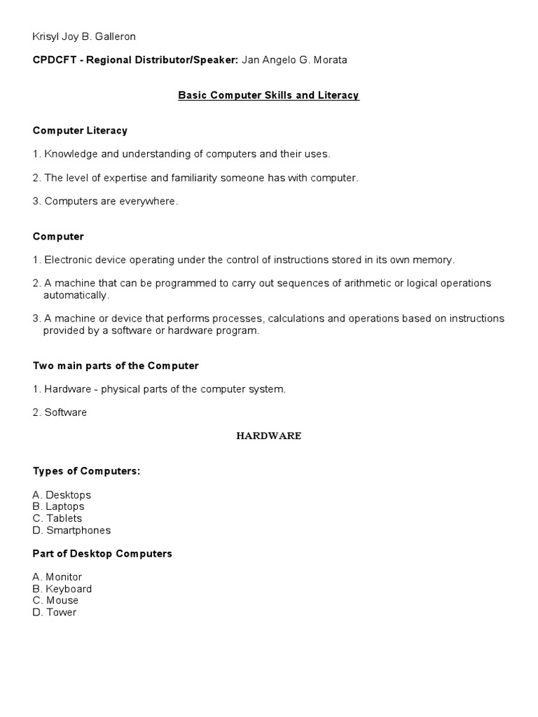 Basic Computer Skills and Literacy