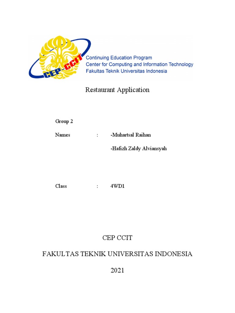 staff at CCIT-FT UI. Project Paper entitled “Restaurant” which the author submitted as a
