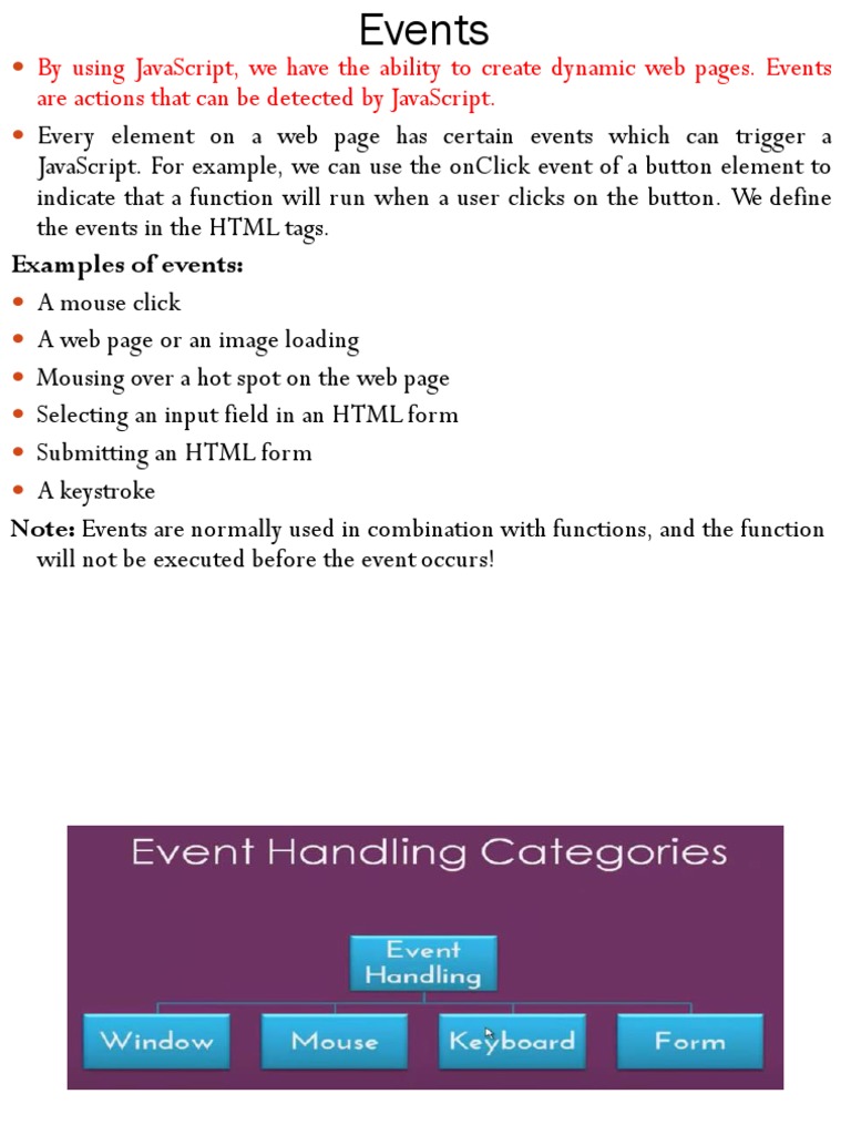 Note: Events are normally used in combination with functions, and the function