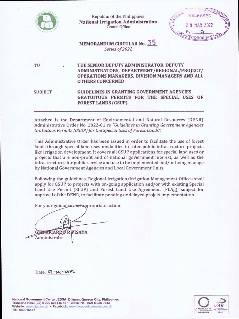 Administrative Order No. 2022-01 re "Guidelines in Granting Government Agencies